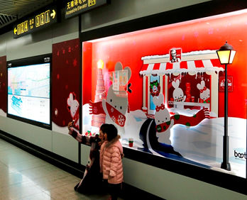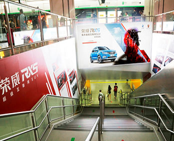 位置及形式:1塊170寸LED+4塊65寸包柱電子屏+5塊12封燈箱+墻貼+4根包柱+4組閘機貼 媒體報價:58萬元/站/4周 制作費:5萬元 |