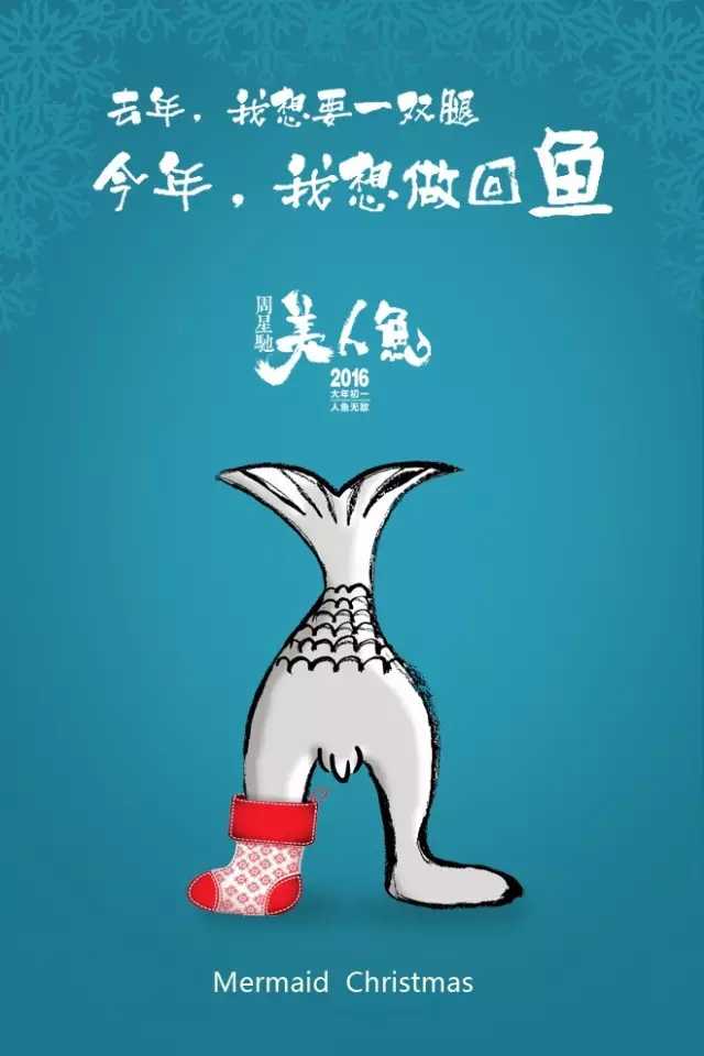 畫面中手繪人魚的元素,來(lái)自電影中鄧超與文章、李尚正的一段專為搞笑而搞笑的情節(jié)。由這3個(gè)元素衍生出來(lái)的物料也陸續(xù)在線下線上放出,比如這張圣誕節(jié)推出的微博稿。