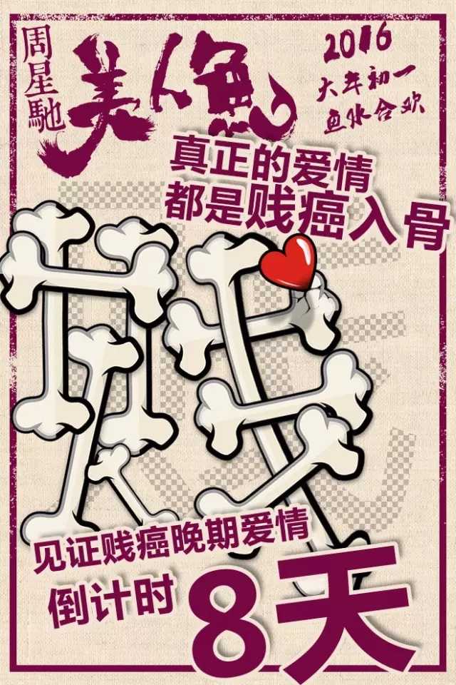 此海報(bào)為整部電影宣傳的第一槍,畫面中文案引用自毛澤東的詩(shī)詞《滿江紅·和郭沫若同志》。周星馳自小受母親影響,喜歡讀毛澤東詩(shī)詞,但此文案是否為星爺親自授意,請(qǐng)恕我們無(wú)法找星爺考證。