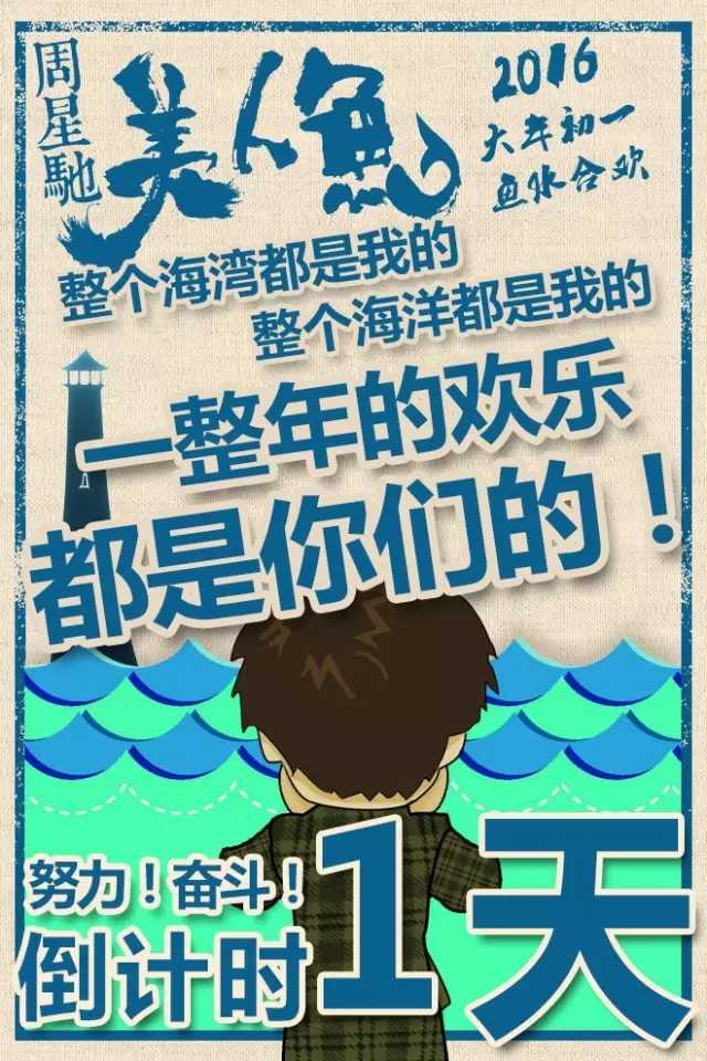 這一組公映倒計(jì)時(shí)海報(bào),畫面延續(xù)了手繪風(fēng)格,文案都是由電影臺(tái)詞改編而來(lái),并無(wú)太多出彩之處,倒是同時(shí)放出的一組以周星馳為主體的倒計(jì)時(shí)海報(bào)耐人尋味。