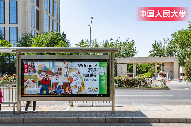 茶派聯合國內34位一流插畫師,共同呈現2023「美好世界」畫展,通過候車亭廣告向大眾展示茶派既有“品味”又有“品位”的品牌底蘊。