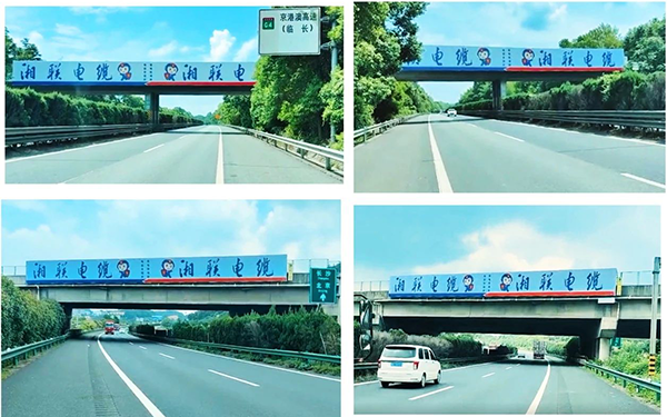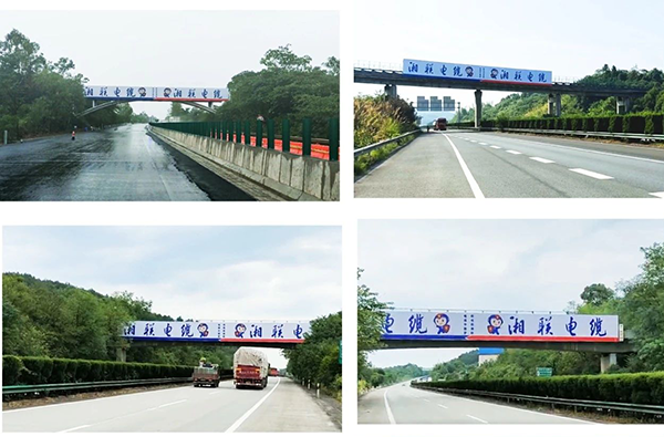 湖南省高速跨線橋廣告案例,建材電纜高速廣告,高速橫跨龍門架廣告效果怎么樣?
