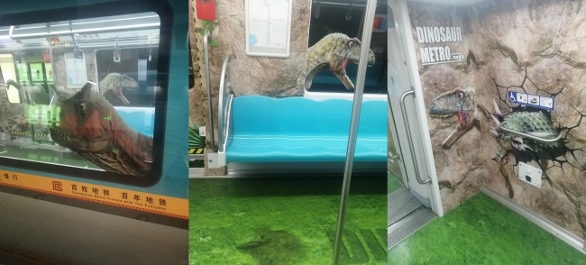常州地鐵恐龍創意全景內包車廣告上大分!常州地鐵列車廣告價格