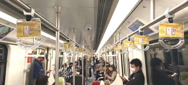 深圳地鐵列車拉手廣告位于車廂上方,均勻分布在整列地鐵全部車廂內。相較于其他地鐵列車車載廣告,畫面不易被遮擋,即使在早晚高峰擁擠的車廂內也可以更加完整的展現畫面內容。80%的乘客在車廂內停留20-60分鐘讓品牌有充足的時間讓廣告內容獲得關注,每天16小時以上的可視時間全面恭候。深圳地鐵拉手廣告可廣泛覆蓋地鐵客流,媒體性價比高,結合異形創意、掃碼活動等互動投放形式,是促使消費行為產生的利因。