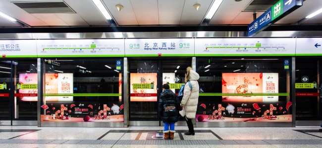 北京地鐵屏蔽門貼以及站臺軌行區聯排燈箱廣告,以透明玻璃貼和發光燈箱的廣告形式在站臺層展現連貫畫面內容,廣告存在感強、到達率高,具有直觀有效的宣傳效果。