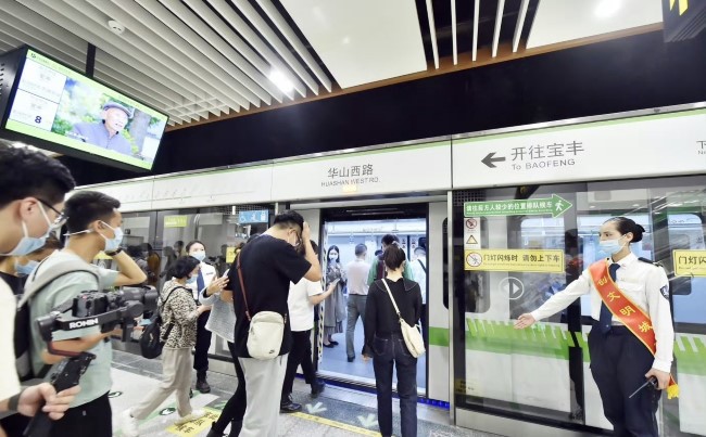 (出站):乘客們,本次列車終點站XXX站,下一站東風(fēng)廣場,可換乘X號線,此站可到達(dá)XXX,請全程佩戴口罩。