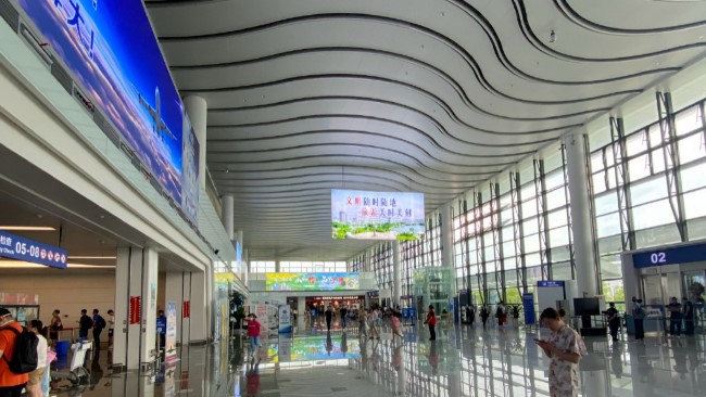 ? 出發大廳安檢口上方LED大屏:覆蓋全部出發旅客,動態展示效果好。