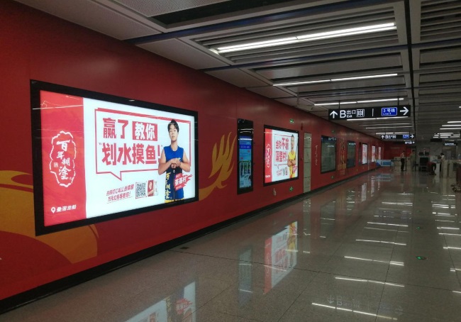 佛山地鐵3號線疊滘站站廳層燈箱墻貼廣告4.5㎡燈箱構成連續視覺走廊,覆蓋閘機至站臺核心動線,形成品牌信息包圍網;墻面貼附媒體無縫銜接乘客平視區,與燈箱構成立體視覺矩陣,回避率趨近于零封閉的地下空間迫使乘客主動凝視廣告,信息接收意愿較地面提升180%。通勤族進出站日均2次固定觸達,單次候車/換乘停留3-5分鐘。廣告通過站廳層墻貼和燈箱組合連續性視覺轟炸,實現單月60+次有效曝光,深度烙印品牌記憶。