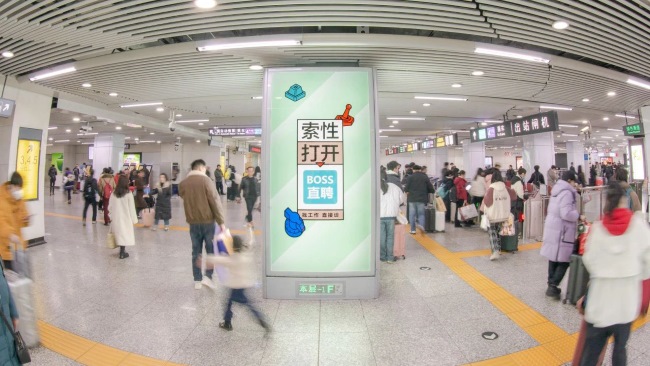 長沙地鐵長沙火車南站 B區(qū)品牌站廳燈箱包柱廣告橫排5根4面燈箱構(gòu)成20面視覺防火墻,單柱水平覆蓋90°視域,2.5米通高精準(zhǔn)統(tǒng)治1.2-2.5米平視帶,日均強制凝視超15萬次地鐵封閉空間迫使乘客主動環(huán)視搜尋信息,廣告信息吸收深度為地面媒體4倍。包柱群成為進出閘機唯一硬廣載體。無數(shù)字屏干擾的環(huán)境保障品牌信息完整灌注。包柱矩陣構(gòu)成“消費信仰圖騰柱”,環(huán)柱行走軌跡強化品牌記憶肌肉反射,新消費品牌認知轉(zhuǎn)化效率提升60%。