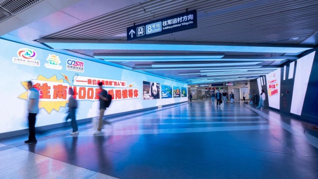 - 貴陽地鐵換乘站廳中央的品牌畫卷:噴水池站墻貼燈箱廣告2026-02-28
