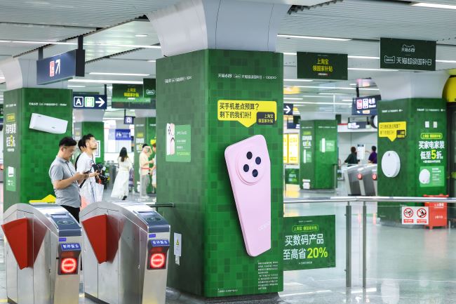 杭州地鐵鳳起路站站廳層品牌森林廣告通過包柱與吊旗的組合,在站廳層構建了一個多維度的品牌展示空間。立柱通常位于乘客動線的核心區(qū)域或關鍵節(jié)點。創(chuàng)意包柱廣告因此能夠?qū)崿F(xiàn)多角度、近距離的曝光,確保信息高效傳遞。結合吊旗從上至下的視覺引導,共同在有限的站廳空間內(nèi)營造出豐富多元、活力滿滿的視覺盛景。多根立柱同時進行創(chuàng)意包柱,形成了規(guī)模化的媒體矩陣。這種陣列式布局能對穿行其間的乘客產(chǎn)生持續(xù)的視覺影響,營造出強烈的品牌陣勢和包圍感。