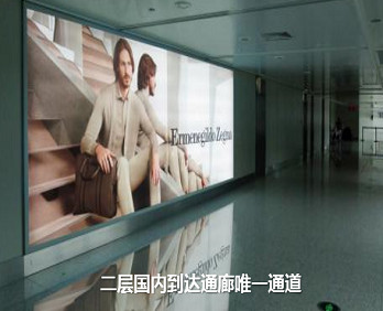 | 西寧機場廣告投放案例圖-廊橋燈箱 | 國內出發到達-廊橋內燈箱 |