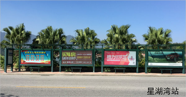 星湖灣站——文明北路(大潤(rùn)發(fā)段),位于星湖畔,城市中心商住區(qū),設(shè)站4座共12塊,站點(diǎn)輻射大潤(rùn)發(fā)、沃爾瑪、星湖灣別墅等大型商業(yè)廣場(chǎng)及高級(jí)住宅別墅小區(qū),廣告影響力巨大,提高品牌及企業(yè)影響力。