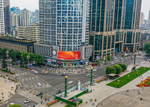 正對地標:大屏正對成都IFS國際金融中心(熊貓爬墻地標),毗鄰遠洋太古里、大慈寺和春熙路步行街。