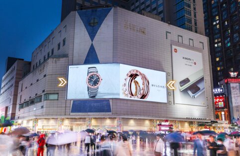 盈嘉大廈位于春熙路商圈與太古里商圈交界處,毗鄰鹽市口商圈總府路、紅星橋,轉瞬即達四大步行街;隨著大眾購買能力的增強,各行業對廣告投放有更大需求;新穎的廣告播放模式和創新視效強化了獨特性,增加了品牌曝光的力度;屏體面積大,視覺效果震撼,可視范圍廣闊,為成都網紅戶外LED地標屏。
