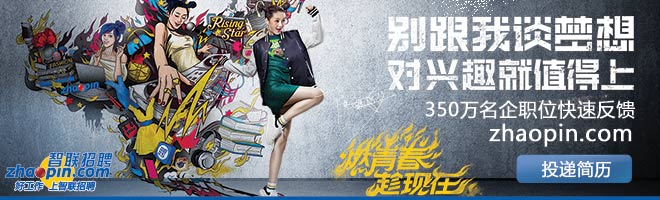 作為老牌勁旅,智聯(lián)招聘自然不會(huì)錯(cuò)過這場(chǎng)大戰(zhàn),面對(duì)突然雄起的一大波對(duì)手,他們應(yīng)該也要菊花一緊了。今年的廣告,智聯(lián)押寶于“青春”二字,難道接下來還要與中華英才網(wǎng)大打出手嗎?急,在線等~智聯(lián)的強(qiáng)大應(yīng)該不只是青春二字可以概括的,雖然“青春”二字很賣錢。況且文案是神馬鬼?知道戰(zhàn)況有多激烈嗎?希望在下一季看到智聯(lián)廣告用海量白領(lǐng)職位、精準(zhǔn)職位推薦、職場(chǎng)教育培訓(xùn)、線下招聘渠道等全方位優(yōu)勢(shì)來服眾。