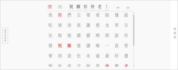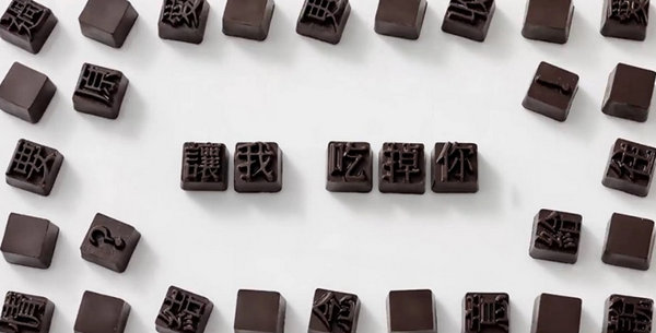 16. 唯一的缺點是“留言就送手寫情書”的活動只能通過Facebook參加,(臺灣不懂大陸的傷悲,就像白天不懂夜的黑)。至于廣告片、《愛情收》情書展、軟文推廣之類的手段沒什么可說的,倒是“愛情體定制巧克力”讓人眼前一亮——用戶在網上自己選定文字,華康字型制作并送到戀人手中。