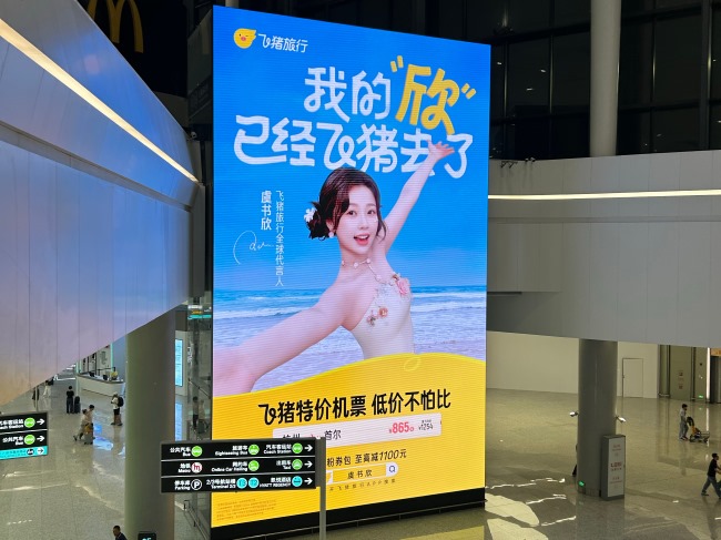 杭州機場T4迎客廳電梯井LED大屏廣告