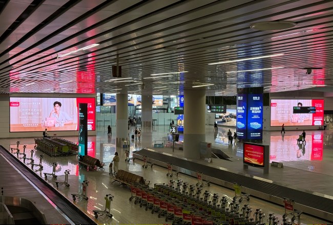- 與航班信息同框出現:成都天府機場到達出口LED大屏廣告2026-03-05