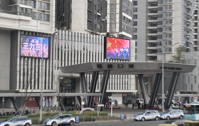 蓮塘口岸LED大屏(7.28m×1.17m)輪播頻次達120次/天,視覺沖擊力強。