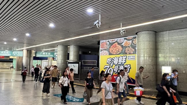 - 候車大廳幾何中心的品牌陣列:廣州白云站三角立柱燈箱廣告2026-02-25