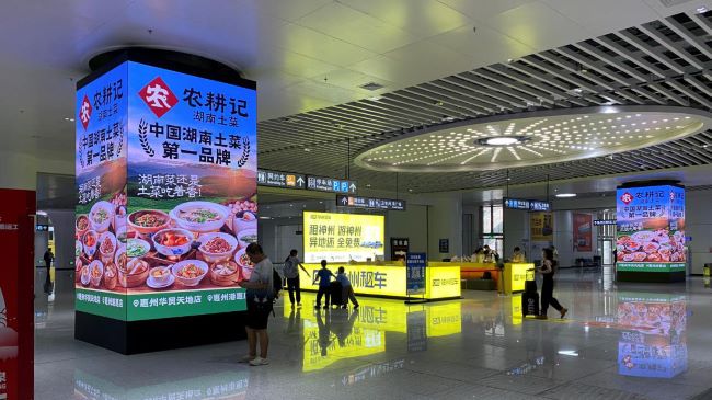 - 候車大廳幾何中心的品牌陣列:廣州白云站三角立柱燈箱廣告2026-02-25