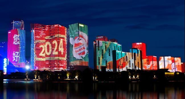 載體獨特:以錢塘江沿岸數十棟高層建筑群作為“畫布”,形成了連綿數公里的超大型立體展示界面。這種規模在全球范圍內都屬罕見。