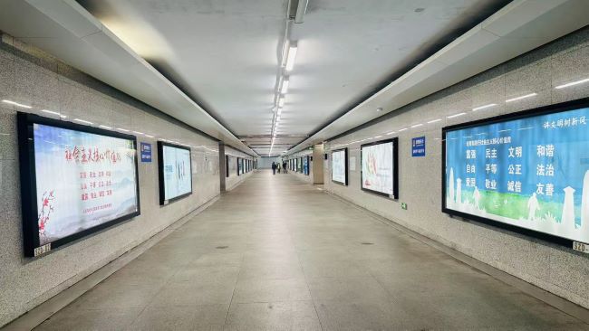 深圳東站出站通道兩側墻面燈箱廣告
