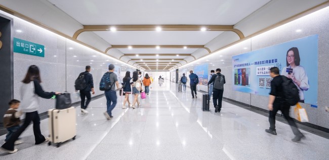 惠州南站出站通道兩側(cè)墻面燈箱廣告7塊大型燈箱沿通道兩側(cè)分布,套裝組合發(fā)布既可在有限預(yù)算內(nèi)實現(xiàn)重點覆蓋,也可通過多組采購形成更密集的展示陣列,增強了品牌形象的展示氣勢。墻面燈箱在通道環(huán)境中具有視覺上的突出性,較大的展示面積確保了廣告內(nèi)容在有效距離內(nèi)的清晰辨識。這種連續(xù)設(shè)置的燈箱組能夠在旅客出站過程中形成持續(xù)的視覺引導(dǎo),使品牌信息得以在相對封閉的通道空間內(nèi)實現(xiàn)有效傳遞。