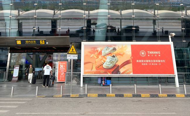 南寧機(jī)場T2航站樓三層國內(nèi)出發(fā)廳大門入口處站立式燈箱廣告