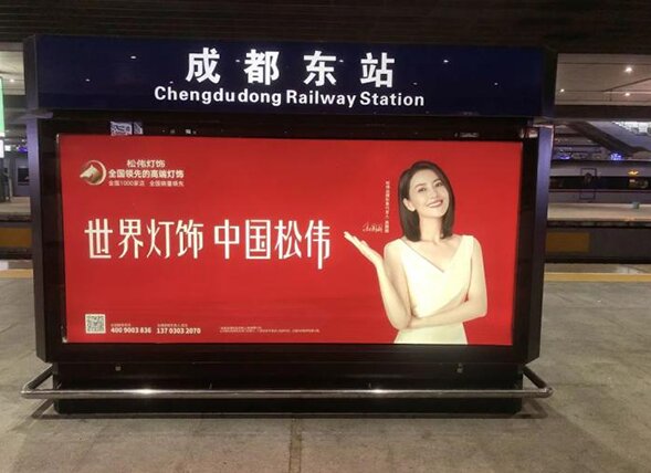 成都東站廣告案例——松偉燈飾建材成都東站站臺燈箱廣告