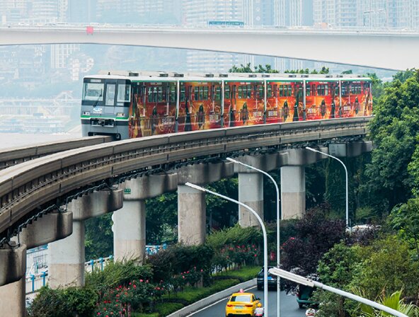 重慶軌道交通3號線是全球運輸效率最高、單線運營里程最長、地形條件最復(fù)雜的跨座式單軌交通線路。