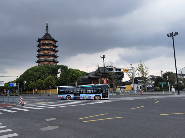 加拿大北極蝦公交車經過蘇州東方之門