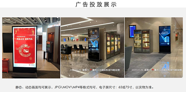 高精度的數碼顯示技術保證了畫面的品質感的最佳,同時媒體畫面的多樣性更是讓產品多元化的企業愛不釋手,廣告主還能為各種短期活動及時更換宣傳內容,即時換畫且無需成本的數碼廣告讓廣告主有更充分的精力投入到渠道中媒體資源占有時間的合理分配,使得廣告主能在有限的費用內實現快速高效覆蓋航空高凈值人群變為可能,合理的資源分配降低媒體投放成本,性價比更高。