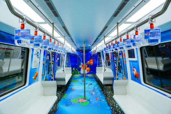 福州地鐵列車廣告價格多少錢?福州地鐵金魚主題車廂內包車廣告