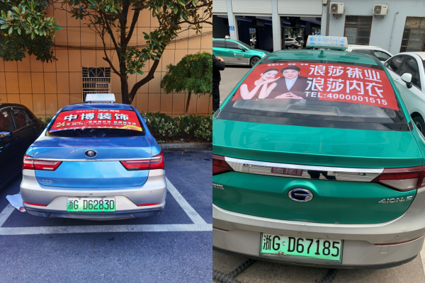義烏出租車廣告價格多少錢?義烏出租車貼玻璃貼后視窗貼廣告