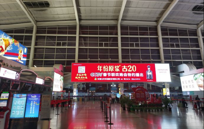 呼和浩特機場二層出發安檢口正上方LED大屏廣告