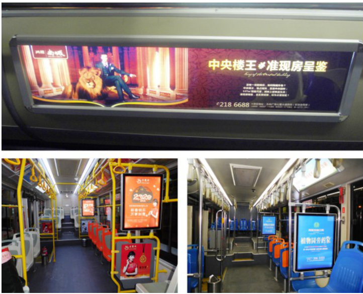 3、車內前后海報+4塊燈箱掛板(全車):1600元/月/臺