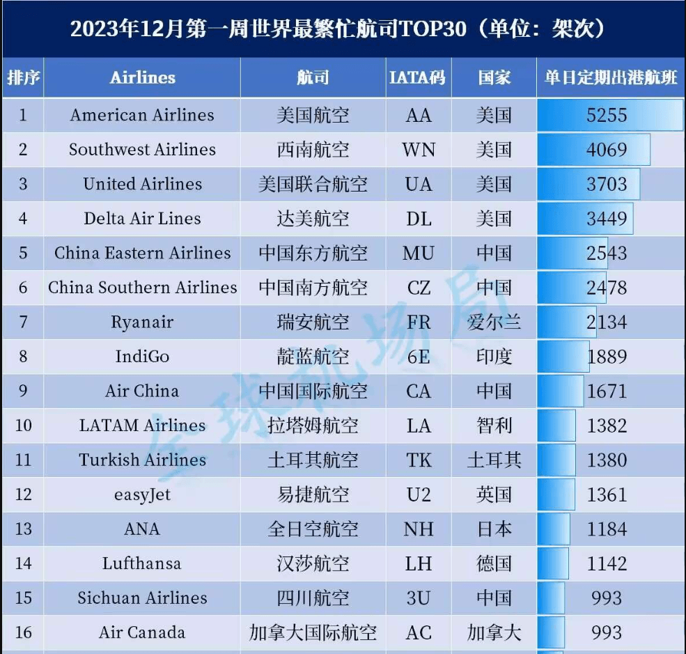 12月初全球最繁忙30大客運航司統(tǒng)計結果顯示,川航以日定期出港993架次航班排名全球第15位,在國內(nèi)僅次于三大航,是我國第四位繁忙的航司。以熊貓元素和航空餐為特色的四川航空年運送旅客量超3000萬人次,春運期間更是航班數(shù)和旅客量激增。