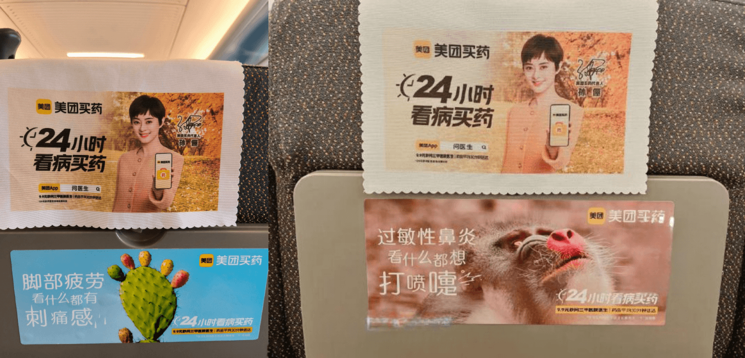 優秀的廣告創意總會被記住!高鐵列車座椅桌板貼頭巾廣告案例價格