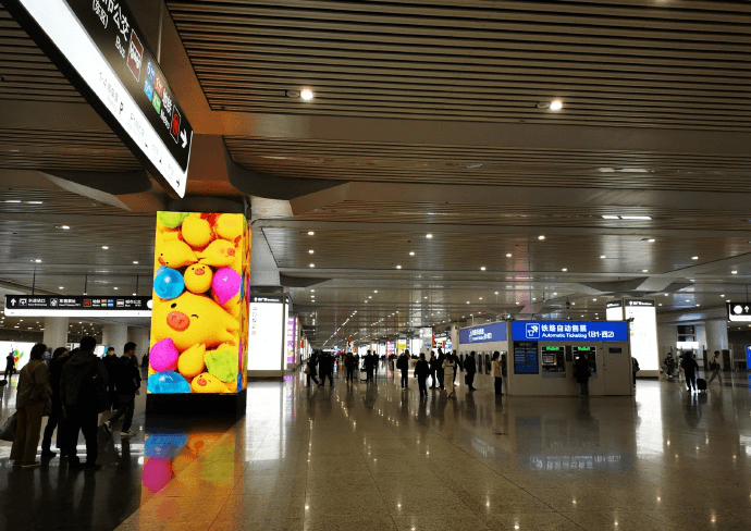 杭州東站到達層主通道四面包柱LED屏廣告