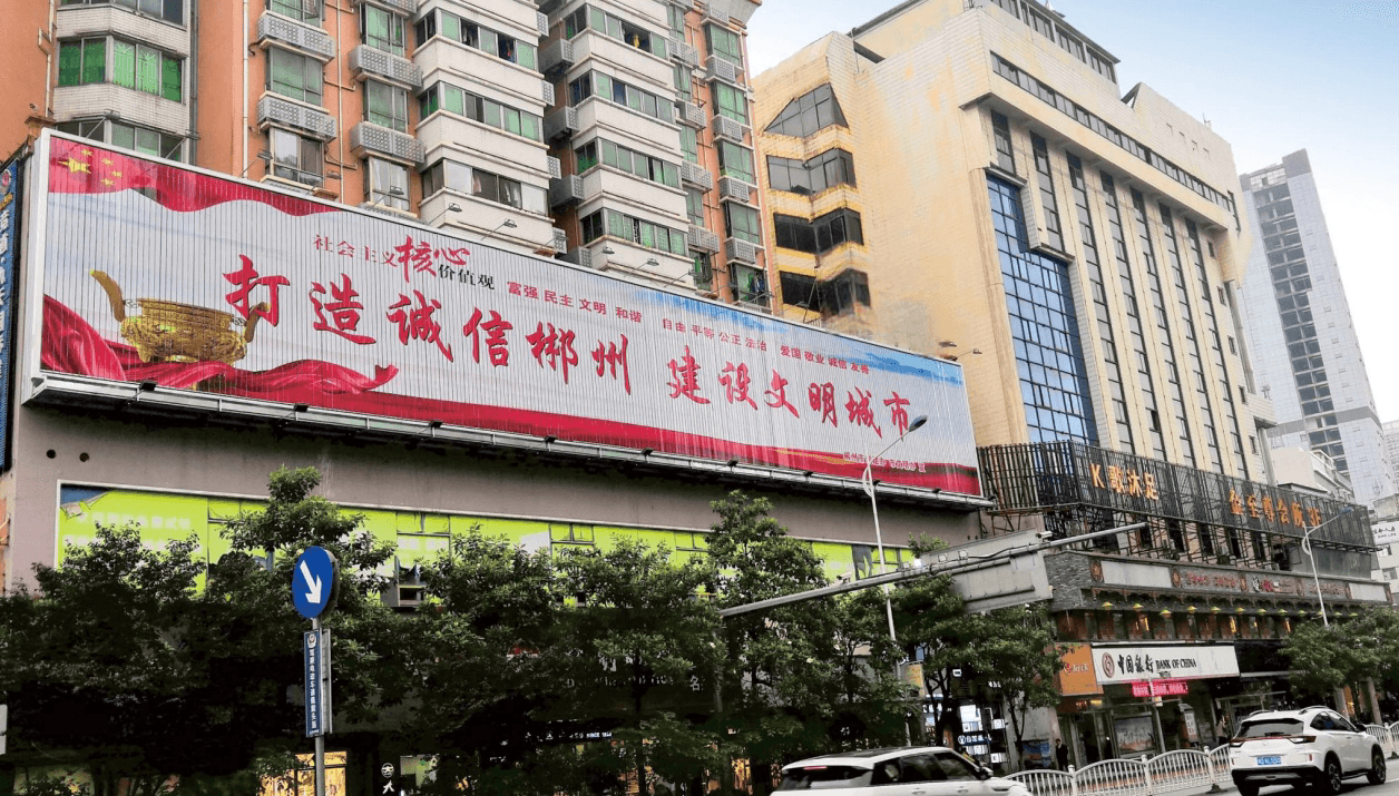 郴州戶外大牌三面翻廣告價格收費多少錢?郴州樓體廣告牌位置優勢