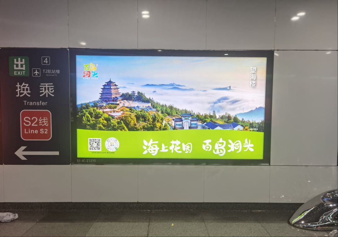 “海上花園 百島洞頭”精選洞頭望海樓、鹿西鳥島、韭菜岙沙灘、海霞青年營等特色文旅資源及業態的照片作為溫州地鐵廣告海報,在溫州S2輕軌沿線機場站、翁垟站、柳市站等9個重要站點向八方游客展示百島洞頭!