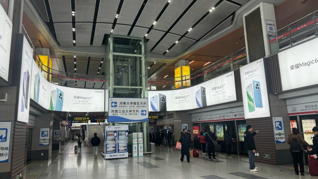 鄭州地鐵1號線鄭州東站站臺環繞品牌區廣告