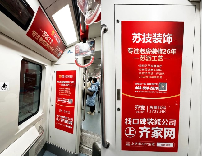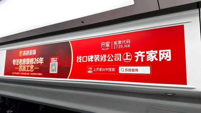 北京地鐵車廂內(nèi)多了一抹醒目的紅色,“上齊家網(wǎng)找裝修公司就搜蘇技裝飾”。蘇技裝飾北京地鐵廣告重磅上線啦!本次是以最流行的地鐵車門廣告形式,選取5號(hào)線、10號(hào)線——北京地鐵人流量大的主要線路,借勢(shì)打造蘇技裝飾高品質(zhì)、好口碑的品牌記憶點(diǎn)。地鐵乘客平均乘車時(shí)間近半個(gè)小時(shí),因此車內(nèi)媒體擁有最長(zhǎng)閱讀時(shí)間,相當(dāng)于在戶外移動(dòng)的平面雜志,可完整詳盡的傳達(dá)廣告信息,是最佳的閱讀型媒體。同時(shí),車內(nèi)媒體還具有獨(dú)占性強(qiáng),干擾度小,媒體數(shù)量多的優(yōu)勢(shì),是品牌傳播、信息傳遞的精選媒體。