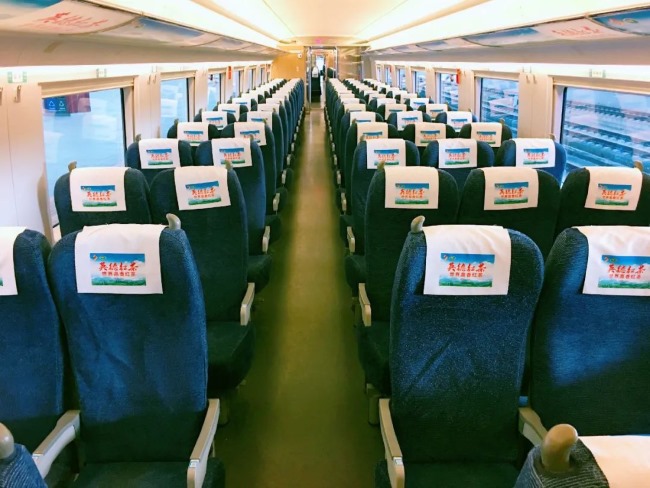 “英德紅茶”冠名的高鐵列車從廣州南站開往宣城,途經韶關、長沙、武漢、合肥南、蕪湖等地,行程1200多公里,列車車身上“英德紅茶 世界高香紅茶”廣告標識格外顯眼,車廂內,枕頭巾、行李架、車窗、小桌板等多處布滿了“英德紅茶”的貼紙和海報,全方位、立體化地展現了英德紅茶的形象,開啟了“英德紅茶”千里茶文化的宣傳之旅。今天,第一戶外小編帶來的是高鐵列車冠名廣告價格和案例圖。