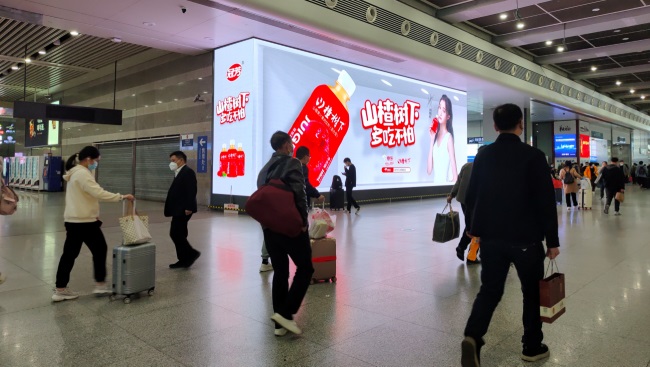 上海虹橋站出站通道LED屏廣告位于到達層通道中央位置,雙屏聯播,同時覆蓋虹橋高鐵站南北換乘通道100%到達旅客,LED大屏廣告4.5米高,面積超70平方米,屏長13米,呈現頂天立地的視覺效果,存在感極強。大畫面、大尺寸、全屏發布,效果震撼。此大屏廣告位經常隨旅客打卡照片刷屏社交媒體,屬于上海虹橋站地標大屏廣告位,也是政企宣傳的重要窗口。