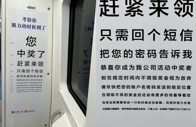 沈陽地鐵內包車防詐宣傳創意廣告上大分!沈陽地鐵列車廣告價格收費