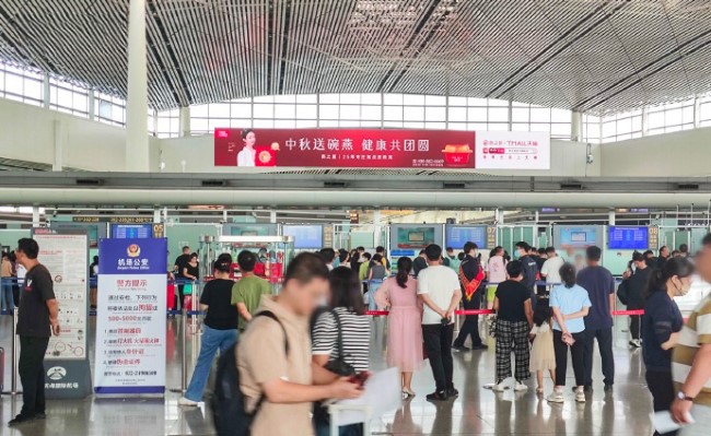 天津機場T2出發(fā)安檢口LED大屏廣告位于國內(nèi)出發(fā)安檢口上方,覆蓋100%國內(nèi)出發(fā)及送機客群。此位置是旅客匯聚排隊安檢等候必經(jīng)之處,出發(fā)大廳客流量最大最熱鬧區(qū)域。LED大屏廣告橫長超38米,循環(huán)播放,廣告面積超165平方米沖擊力極強存在感強。位于高處,可視范圍廣。周圍環(huán)境明亮開闊,無任何遮擋物。自帶濱海機場地標大屏品牌效應,無疑是品牌發(fā)布的巨型名片。單周起做,適合文體活動、商業(yè)促銷、新品上市、公司周年等政企客戶廣告宣傳。