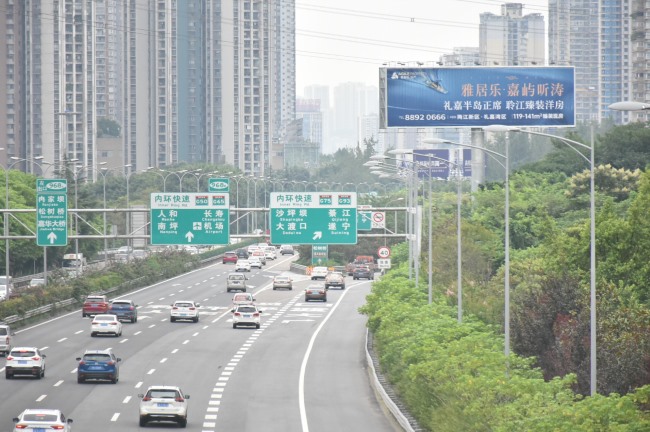 重慶內環高速大牌三面翻廣告,重慶武渝高速高桿立柱大牌廣告價格